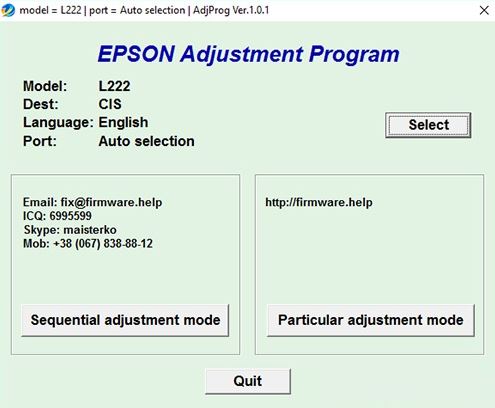 La herramienta para el reinicio de la Epson l222